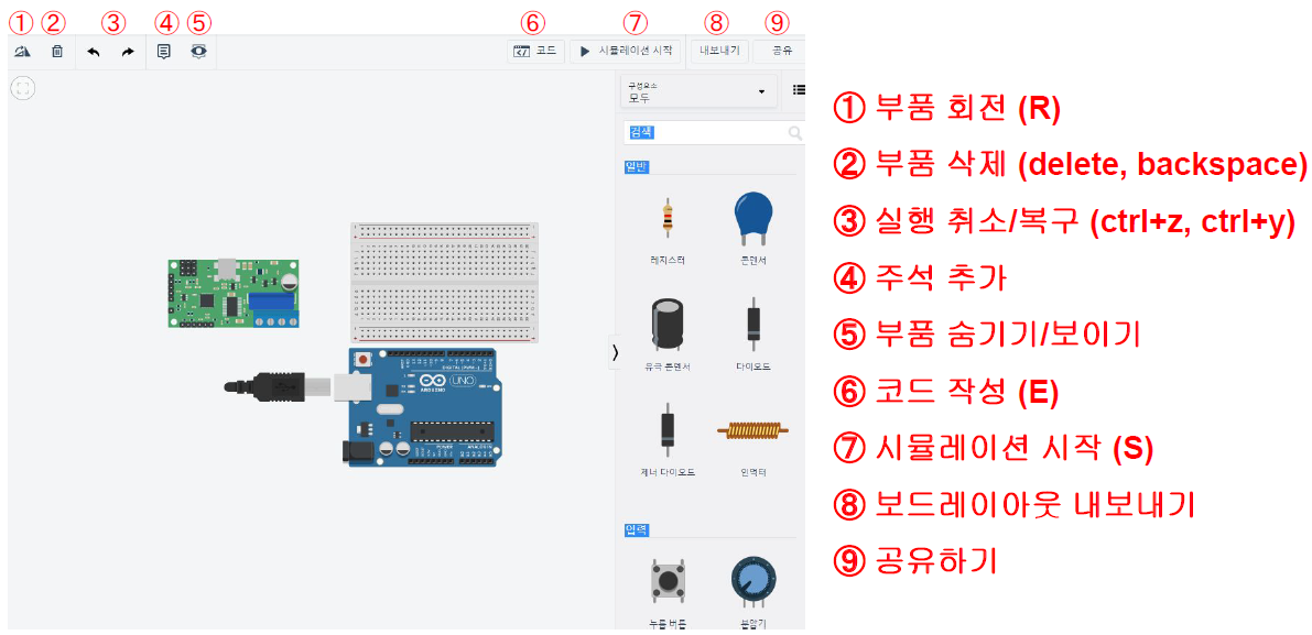 아두이노는 없지만 지금 당장 무언가를 해보고 싶다면 Autocad에서 만든 Tinkercad 서비스를 활용해보자. Tinkercad는 무료 온라인 서비스이며, 온라인 상에서 가상으로 아두이노 회로를 구성하고 코딩도 가능하며 동작까지 해볼 수 있는 기능이 있다. (Tinkercad : https://www.tinkercad.com/ )